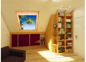 Vue sur une plage des tropiques c'est le décor que vous apportera ce sticker trompe l'oeil velux.