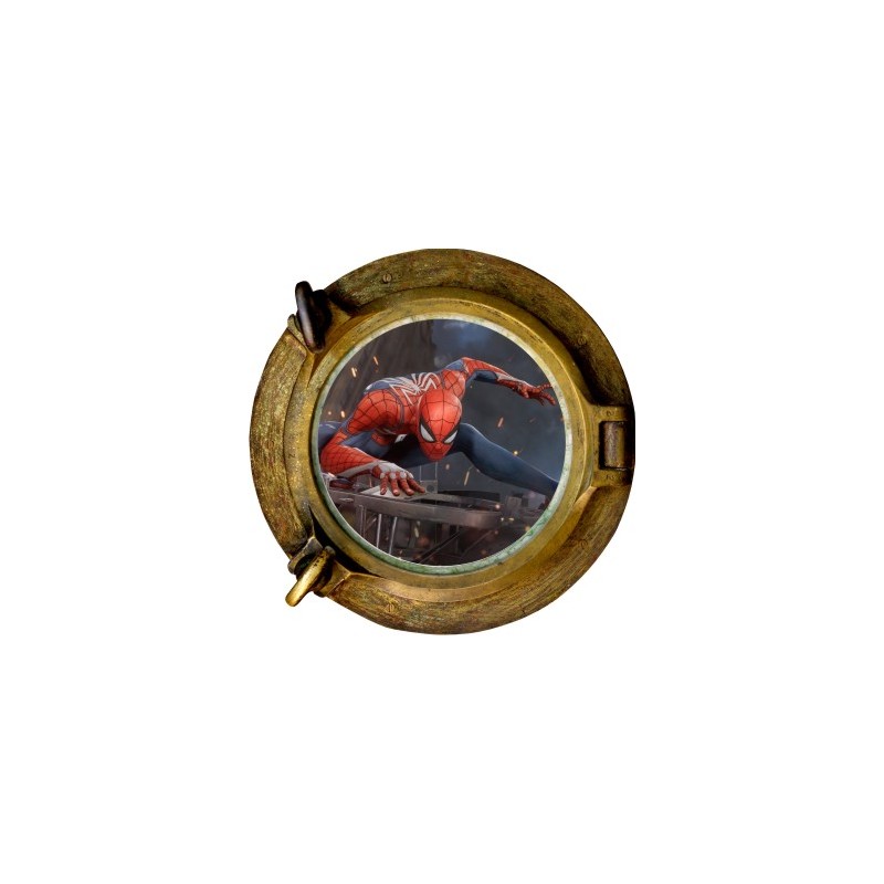 Sticker de décoration murale en trompe l'oeil de hublot bronze Spiderman. La déco idéale pour vos enfants. Sur un mur ou sur un meuble de votre petit garçon, cet autocollant trompe l'oeil hublot bronze Spiderman sera la touche parfaite pour une décoration réussie.