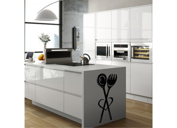 Vous pouvez utiliser ce sticker cuillère et fourchette cœur pour décorer vos murs et meubles de cuisine.