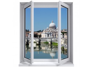 Stickers de décoration mural en trompe l'oeil de fenêtre avec une vue sur le Vatican a Rome.