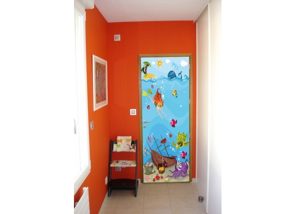 Stickers de décoration murale en trompe l'oeil avec vue sur un paysage sous-marin. La déco adhésive idéale pour vos enfants.