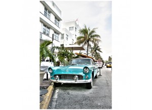 Stickers photo d'une rue de miami beach. Grosse voiture et palmiers pour une déco très américane.